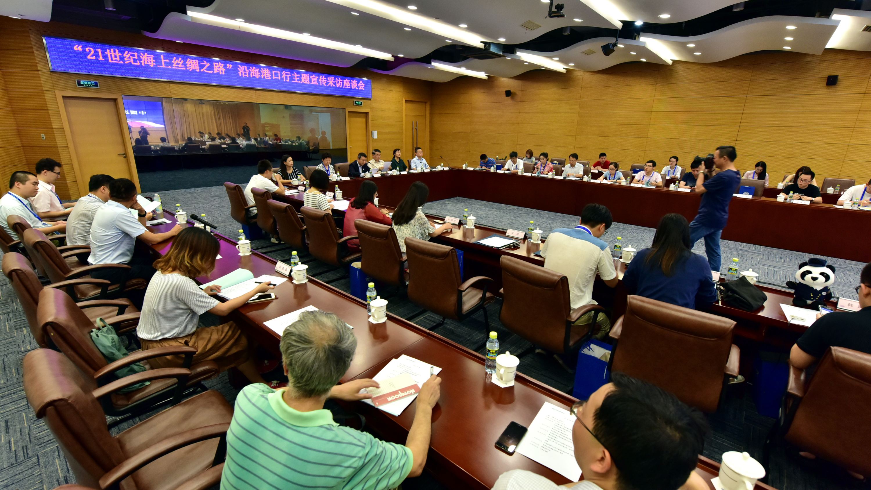 7月8日,在中远海运集团召开的“21世纪海上丝绸之路”沿海港口行座谈会现场。