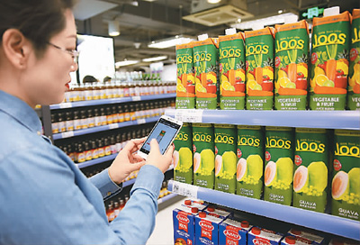 在青岛保税港区进口商品QTV直购中心,顾客用手机扫描二维码,可实现进口商品防伪追溯。